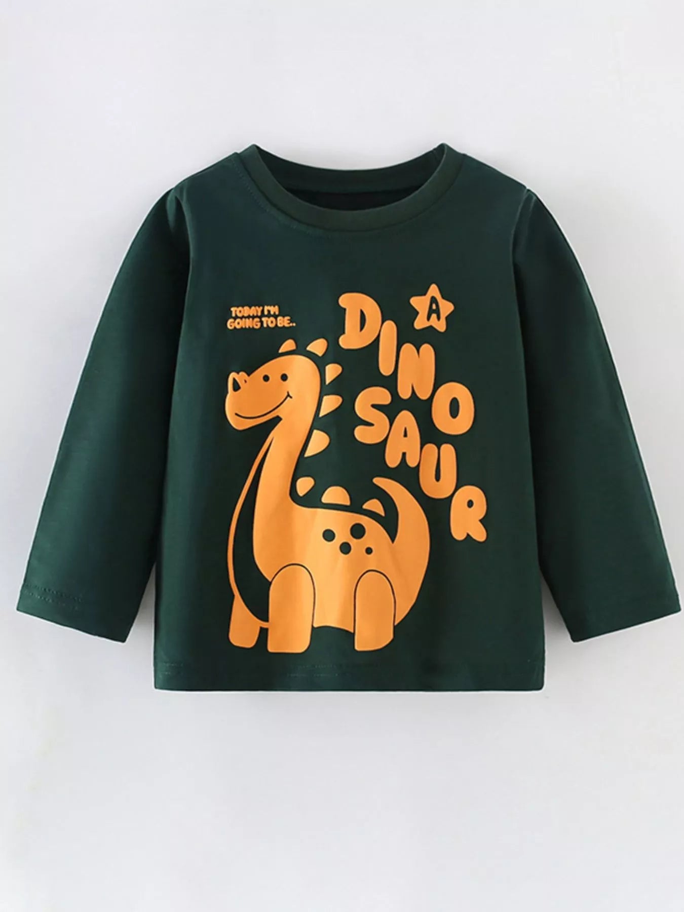 Kinder T-Shirt met Schattige Dino en Lange Mouwen