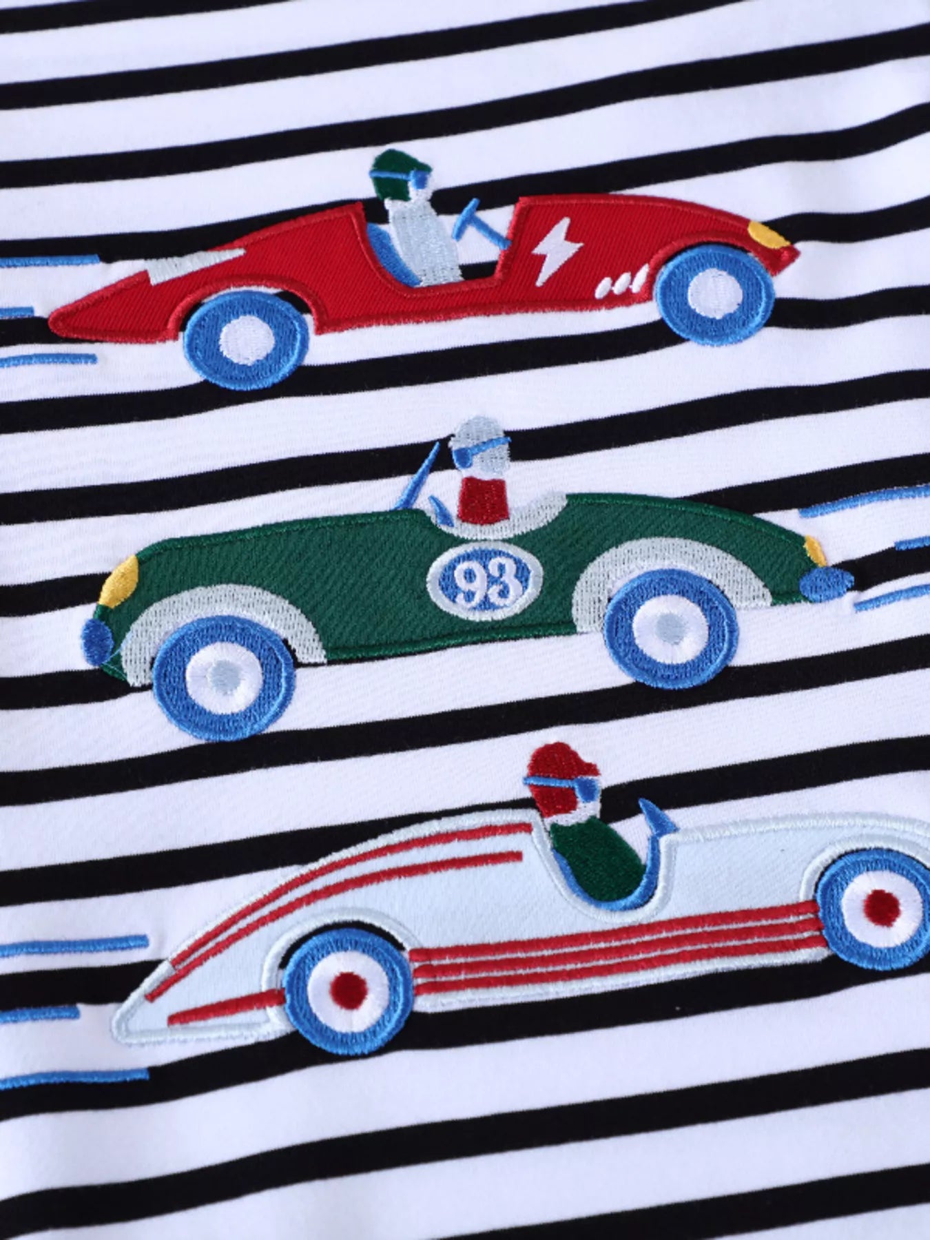 Gestreept Kinder-T-shirt met Geborduurde Raceauto – Lange Mouwen