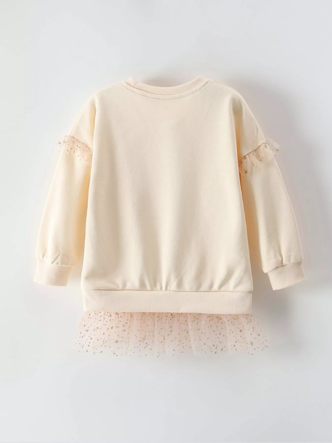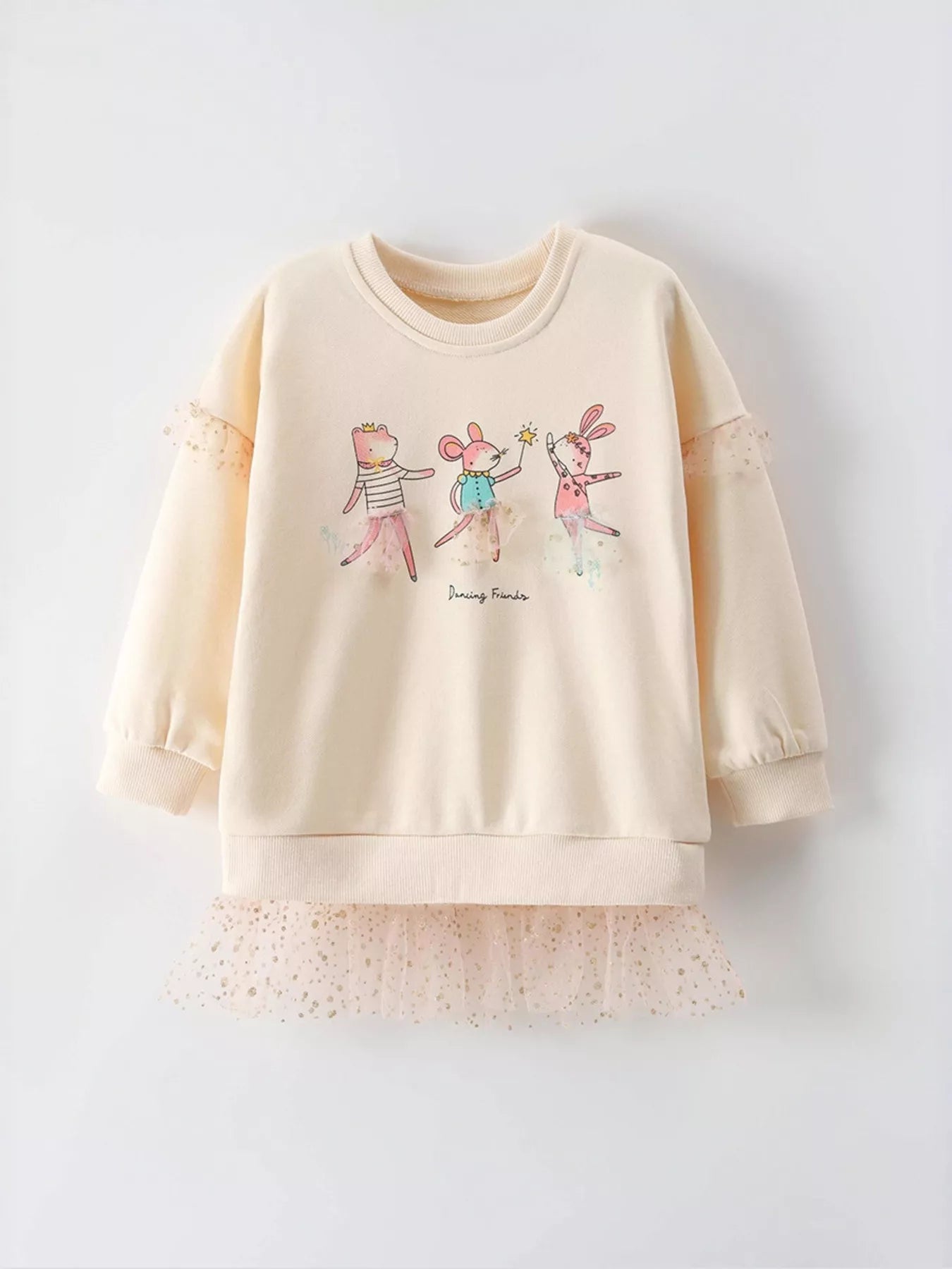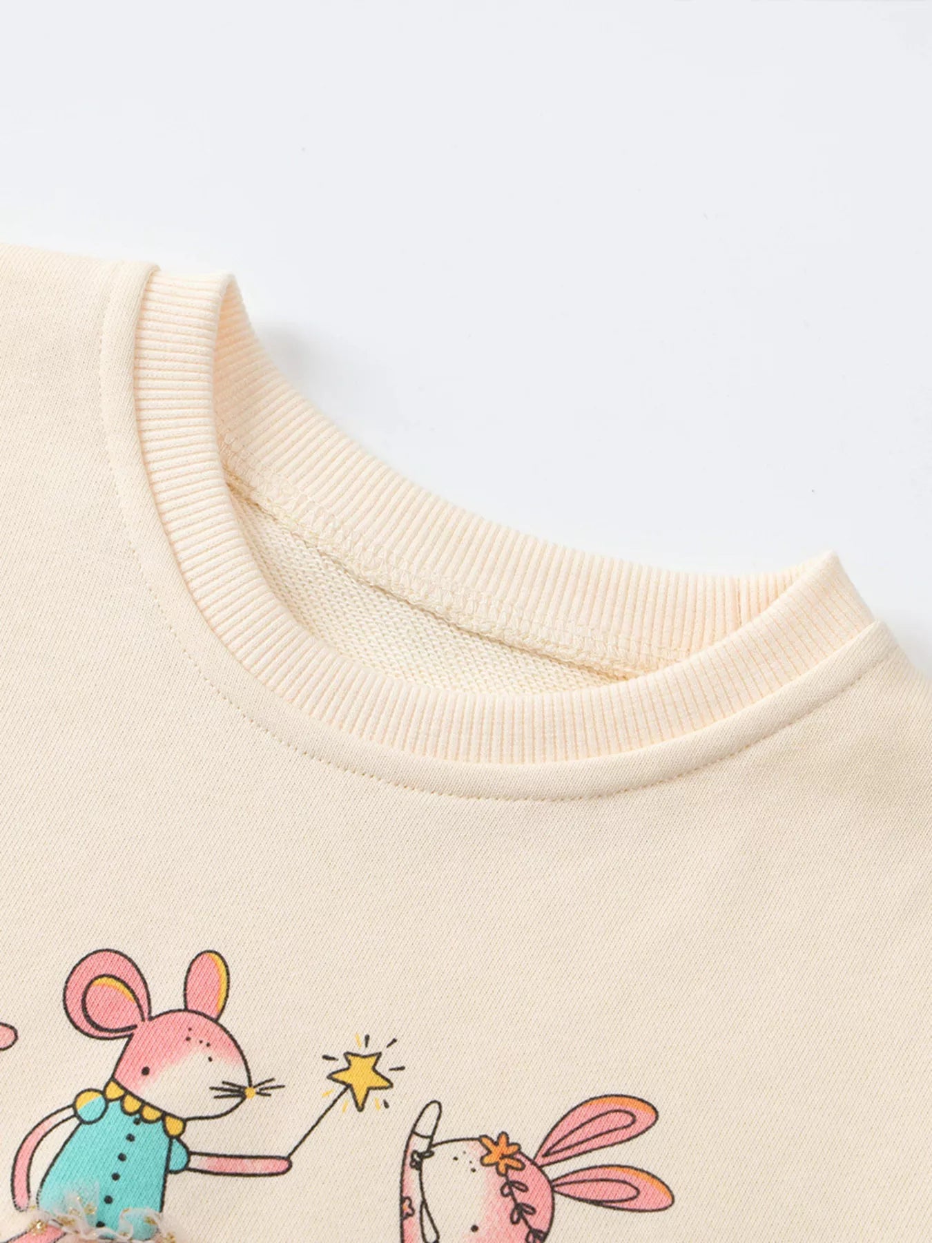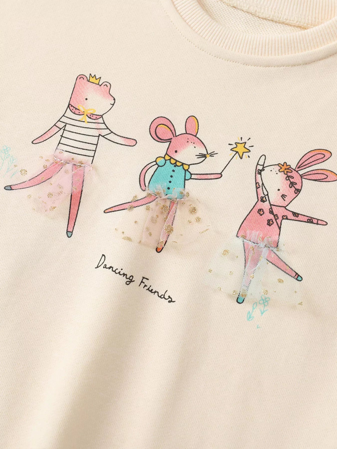 Kinder Sweatshirt met Cartoon Dierenprint en Mesh Afwerking