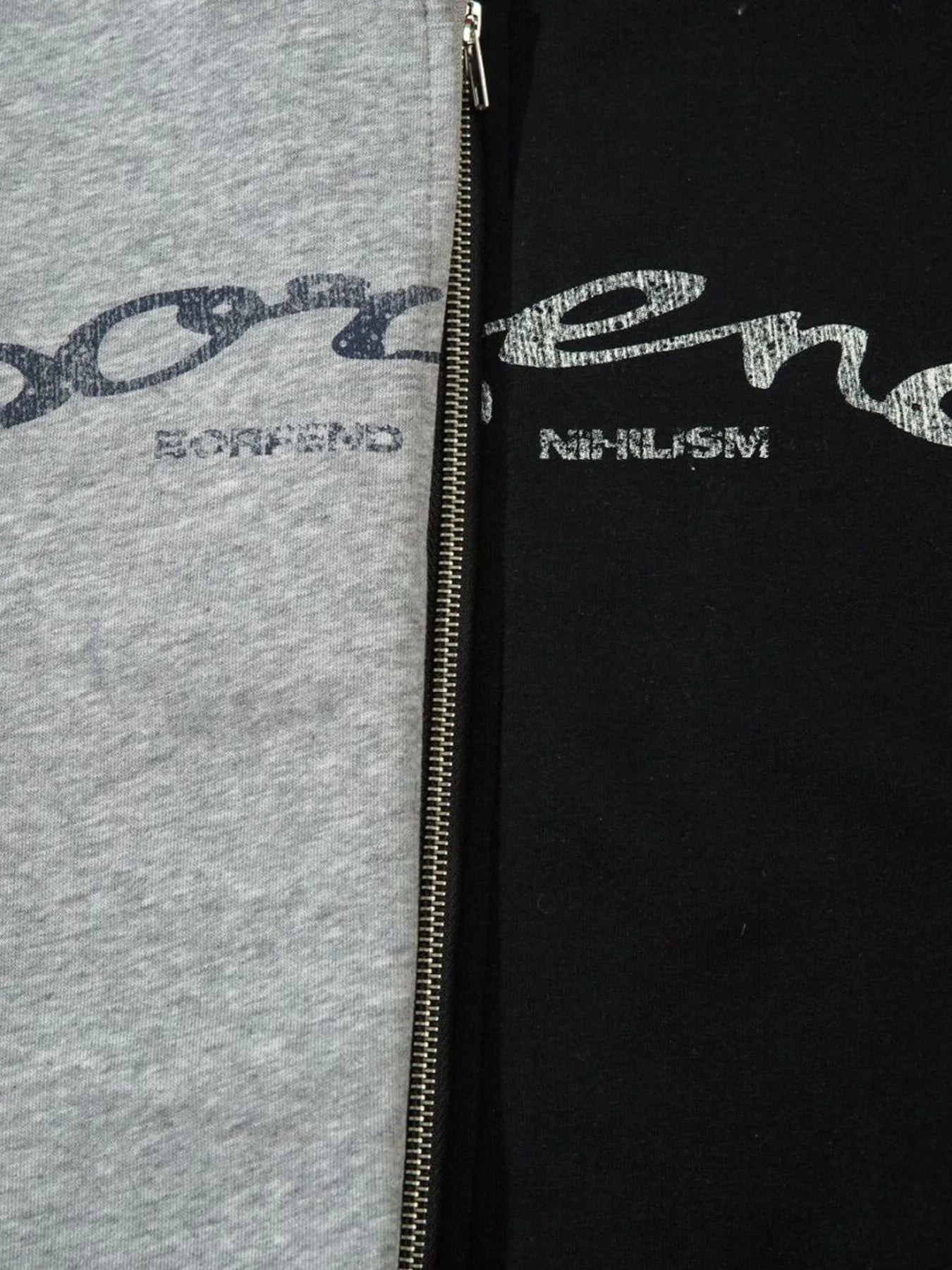 Heren Hoodie met Rits en Letterprint in Kleurvlakken