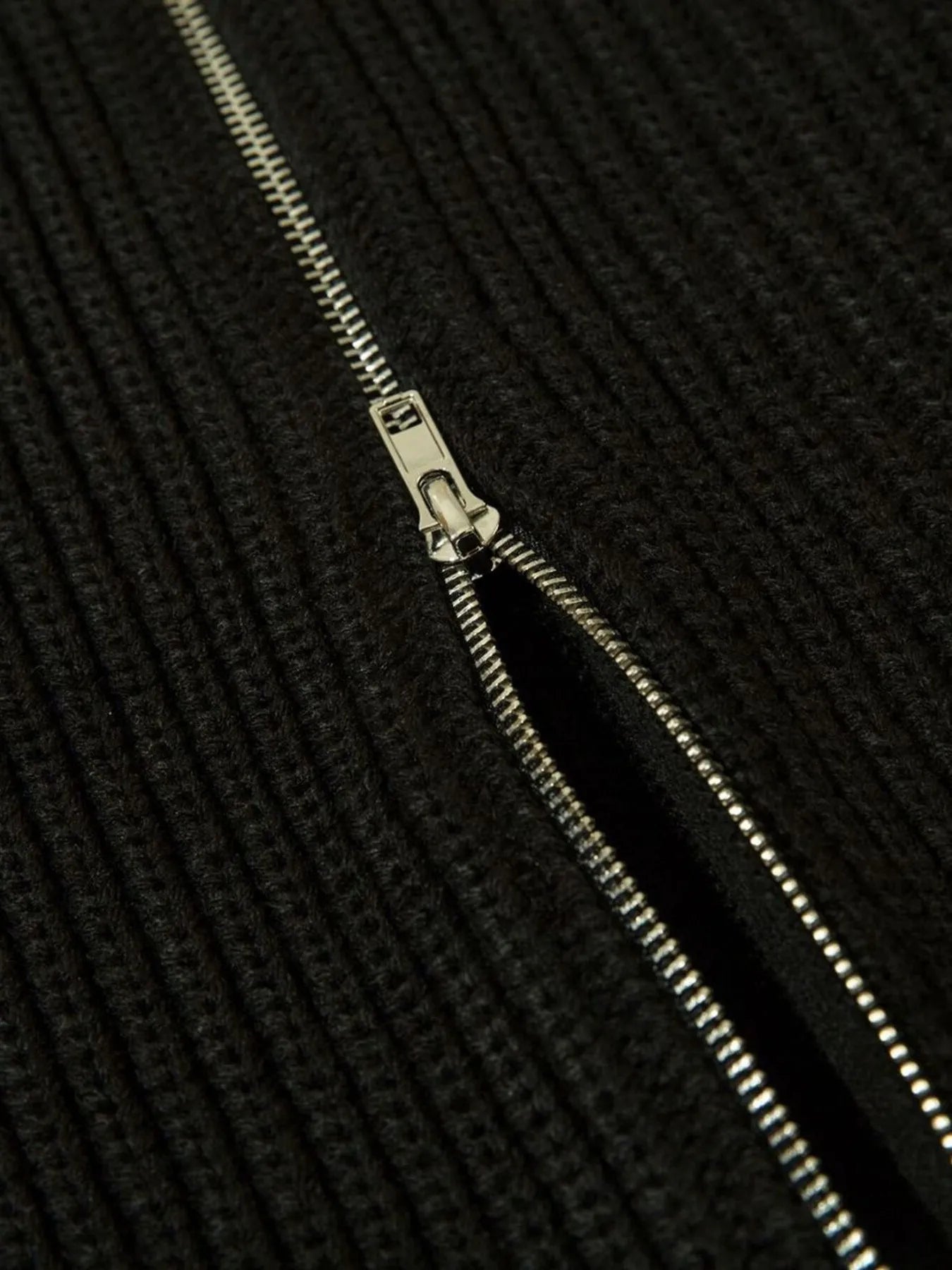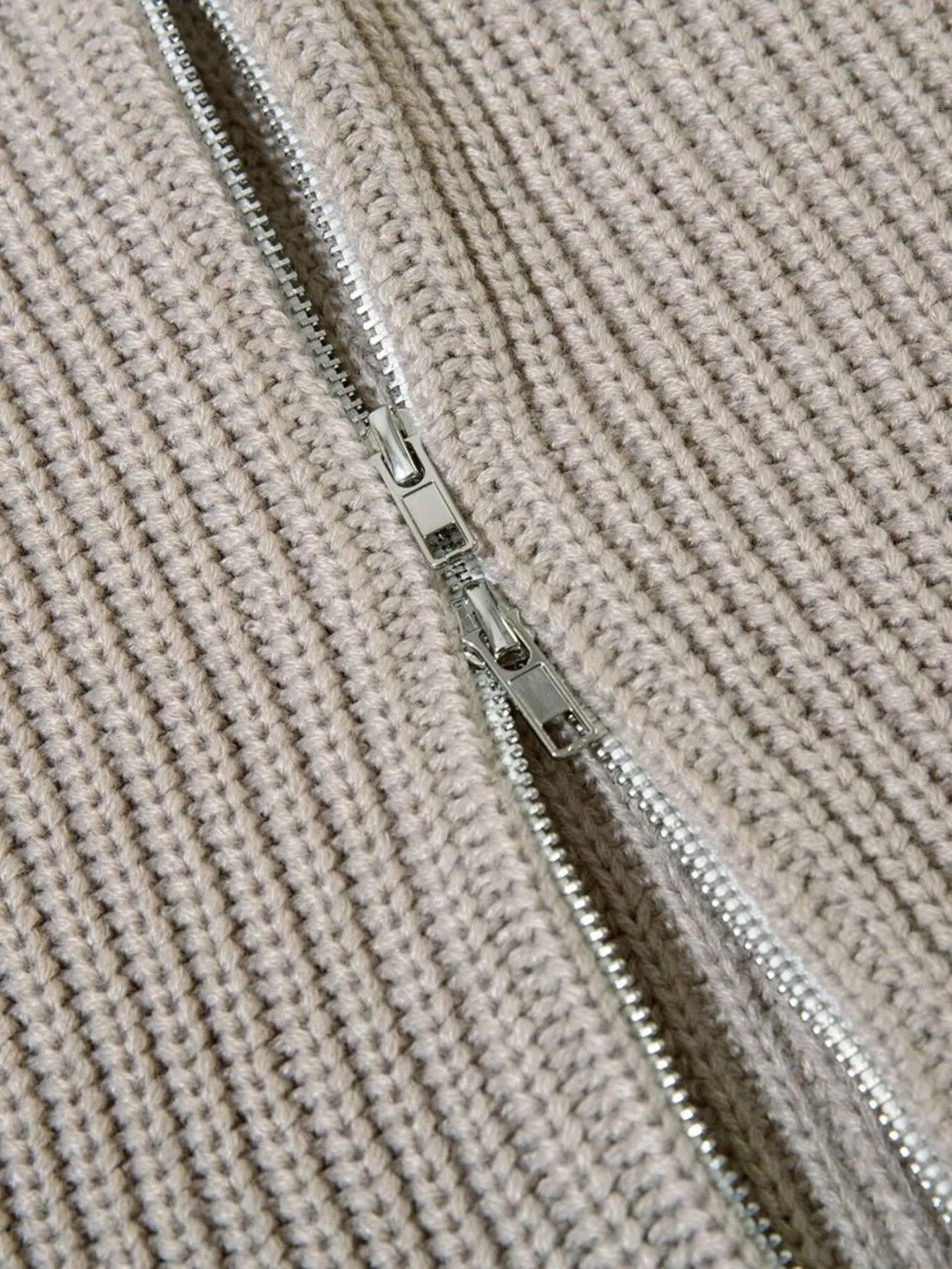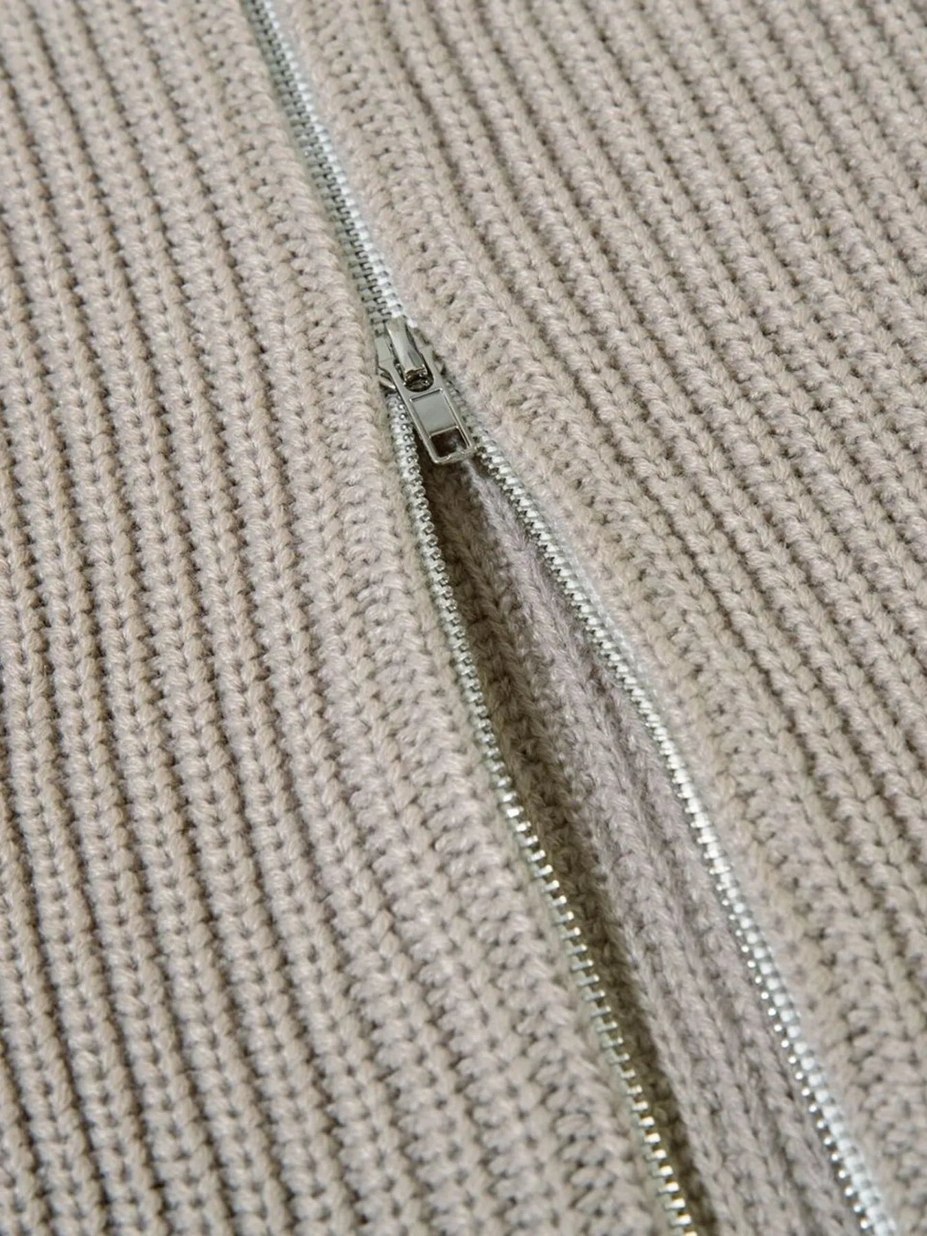 • Kenmerken: Basisstijl, geribde textuur, ritssluiting aan de voorkant