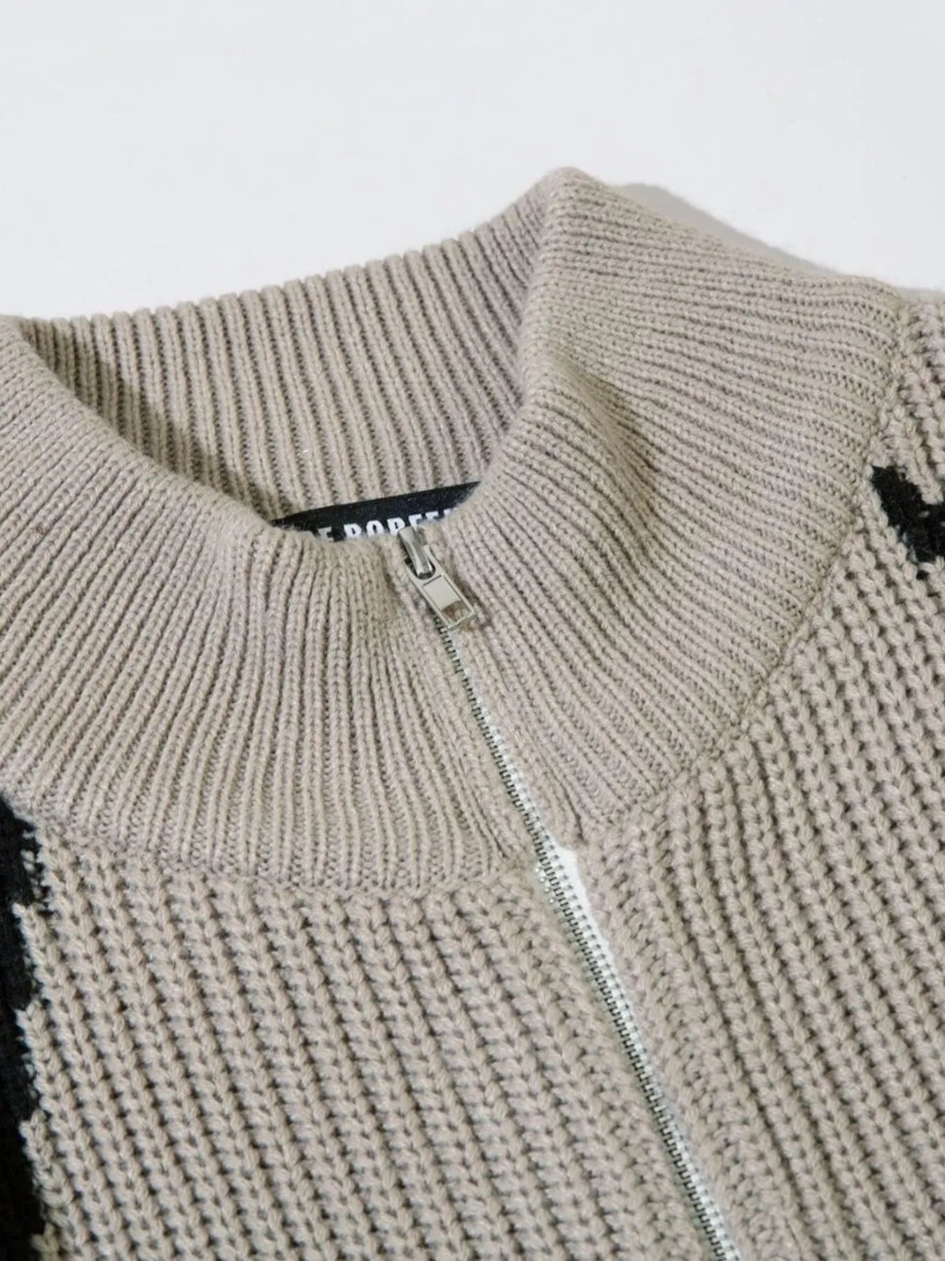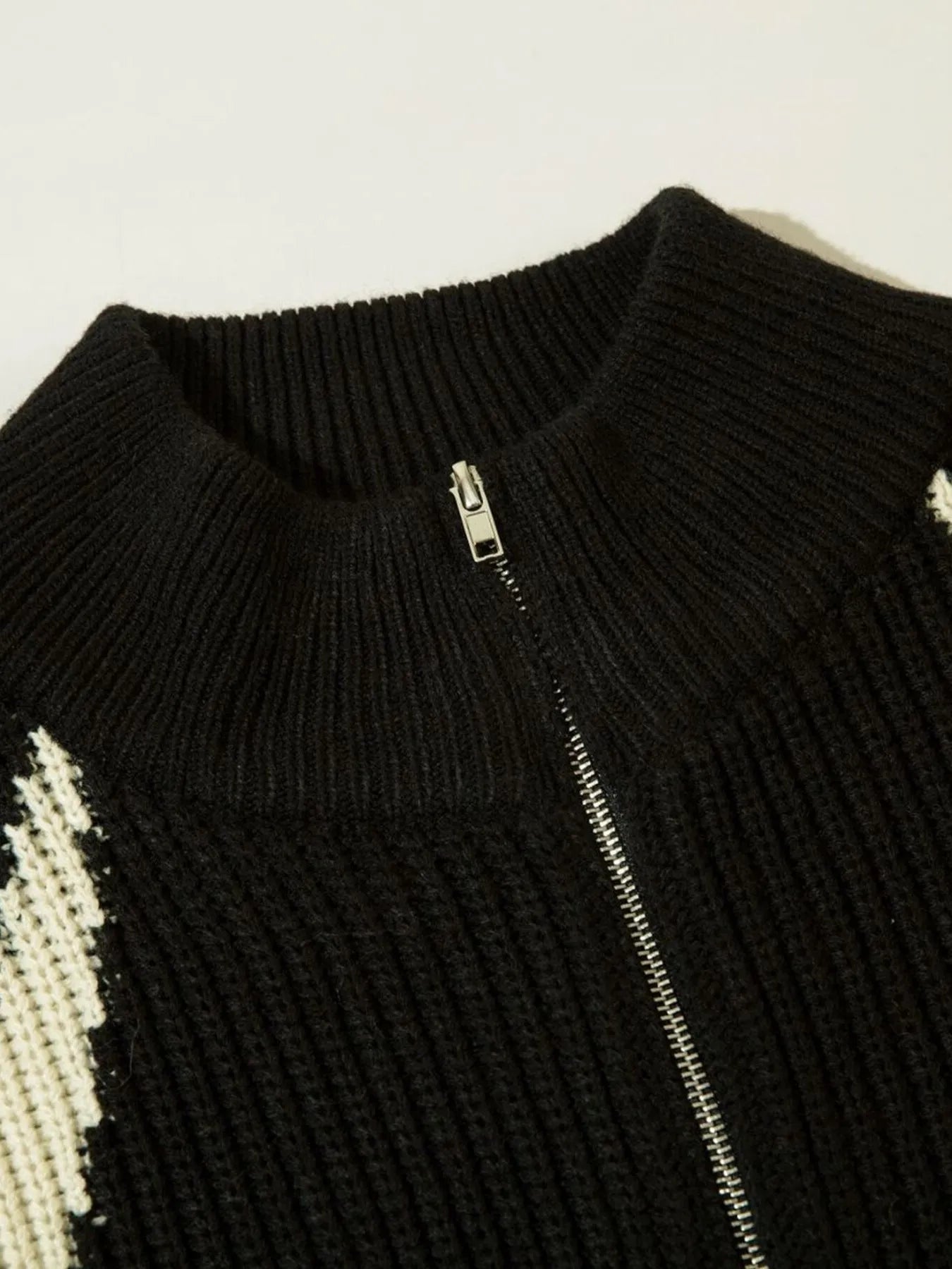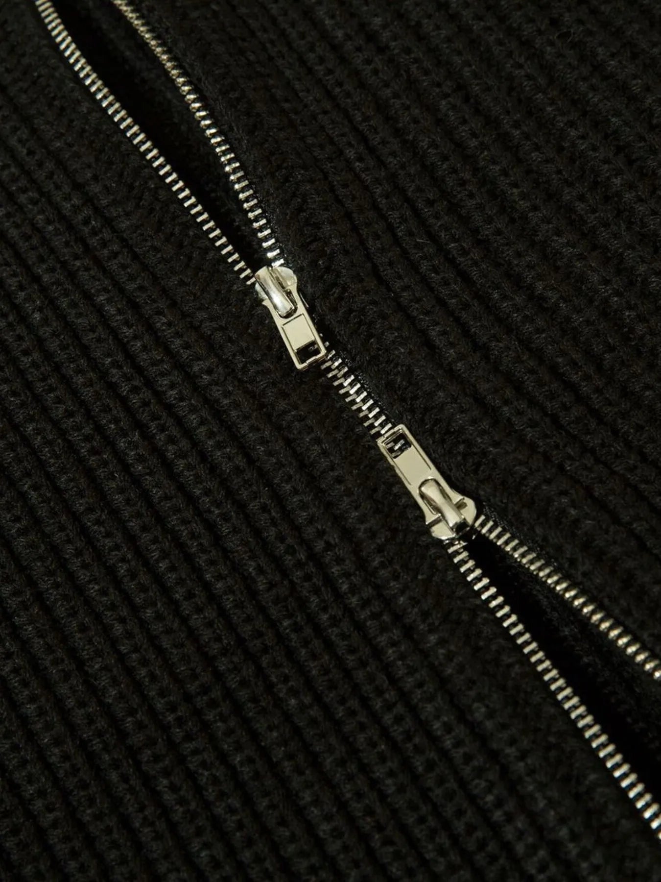 • Kenmerken: Basisstijl, geribde textuur, ritssluiting aan de voorkant