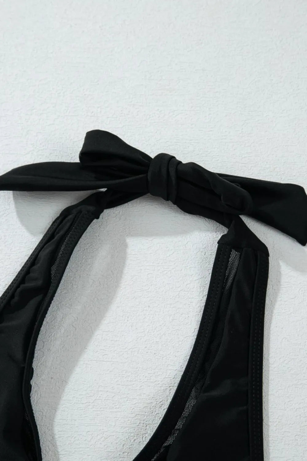 Een stijlvolle tweedelige bikiniset met een elegant strikdetail en uitneembare vulling voor verstelbaar comfort. De gemiddelde rekbaarheid zorgt voor een flatterende en ondersteunende pasvorm – perfect voor stranddagen of ontspannen bij het zwembad.